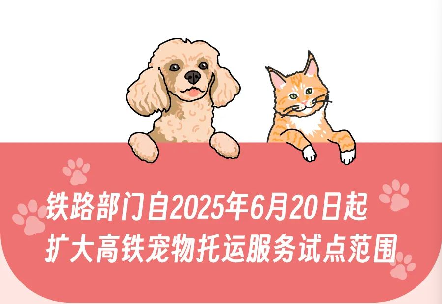 为更好满足旅客携宠出行的需求,铁路部门自6月20日起扩大高铁宠物托运服务试点范围,覆盖京沪、京广、京哈、沪昆等8条高铁的25座车站、38趟动车组列车,...