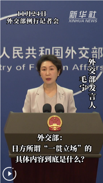 外交部发言人毛宁24日就日方所谓在台湾问题上的“一贯立场”答问时表示,如果日方只是反复重申立场未变的概念,却对具体内容语焉不详,在行动上不断越线,那这...